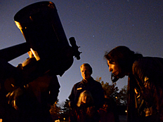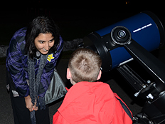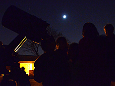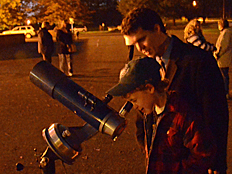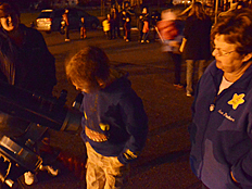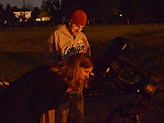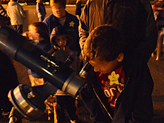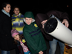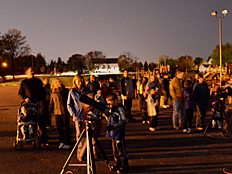 | Photos of the Sky Watch session are shown on the left and below. It was really fun looking through the telescopes with our parents and friends. |
