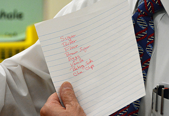 In fact, Dr. DeLeo asked each of our teachers for their favorite chocolate chip cookie recipe. Then he cut the recipe in half and gave each half to a student.