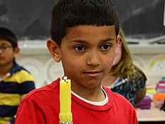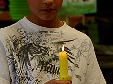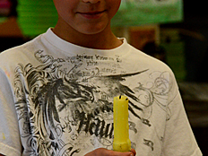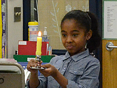 | Mrs. Unger, a teacher at Thomas Jefferson, was taking pictures of a student when the candle flame blew out. She must be a really great photographer, because, as you can see on the right, she got a photo of the candle flame as it was being blown away from the wick of the candle! |
