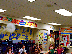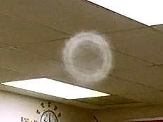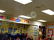 Dr. DeLeo brought a fog maker, like the kind they use in movies to make fake fog. Now we could really see the rings of air! He aimed them at the ceiling so we could see the rings more clearly. |