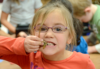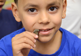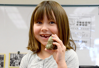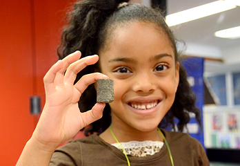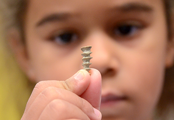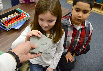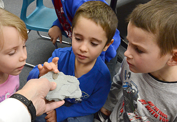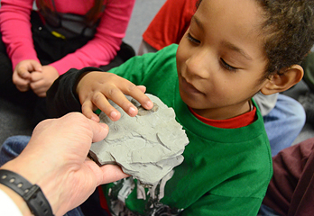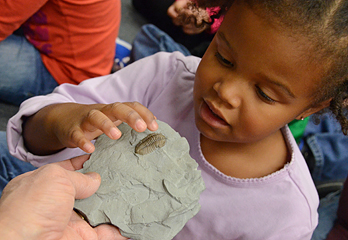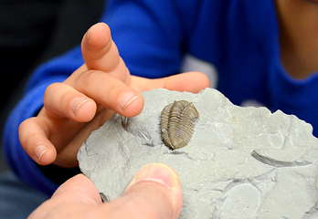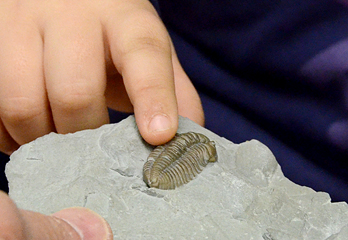 Dr. DeLeo showed us a fossil of an animal called a trilobite, and we all got to pet it. Trilobites no longer live today; they are extinct like the dinosaurs. To the left and below are pictures of us petting the trilobite.
