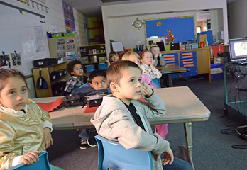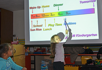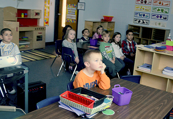 Below are pictures taken during Mrs. Weikert's afternoon kindergarten class. Click the play button on the photo on the right to see a VIDEO.